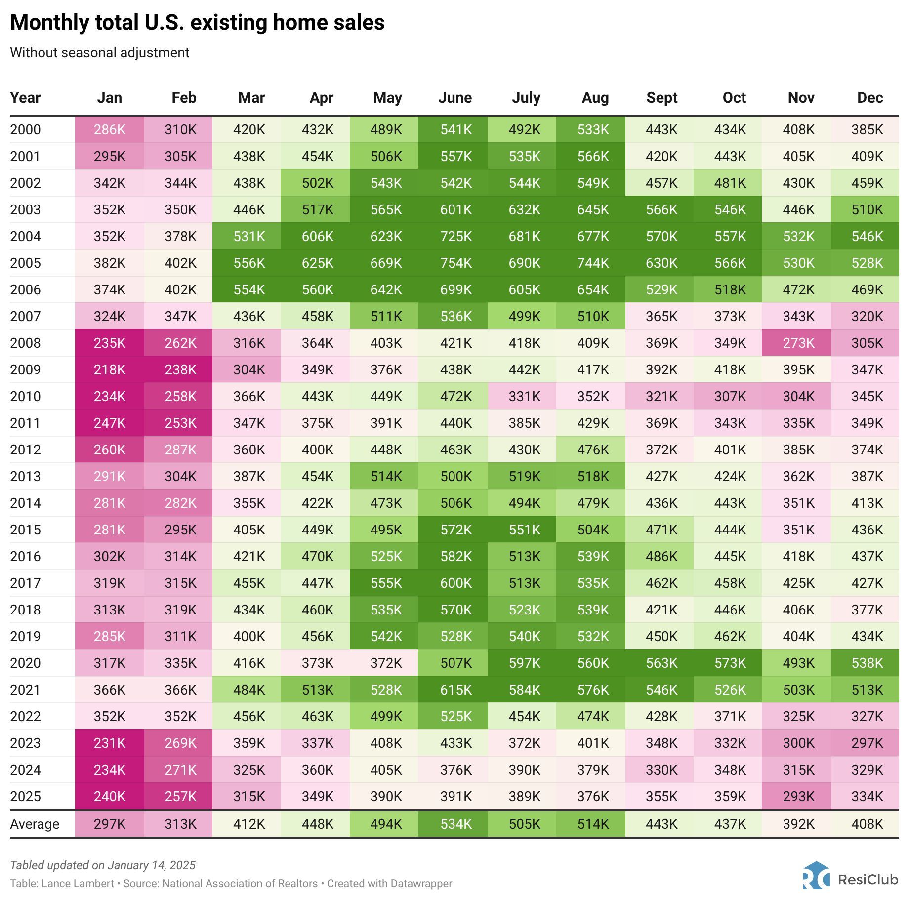 U.S. existing home sales totaled 4.06 million in calendar year 2025. That's tied for the lowest year since 1995—and essentially flat from 2023 (4.09M) and 2024 (4.06M). On a seasonally adjusted annualized basis, U.S. existing home sales are now running at 4.35M... meaning, if we maintain the current rate of existing home sales—and seasonality acts as expected—we'd see slightly more existing home sales in 2026 than we saw in 2025.