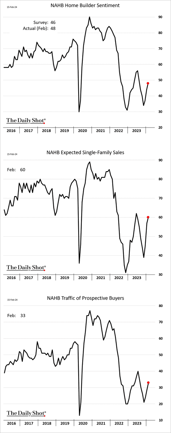 Homebuilder sentiment improved further this month.