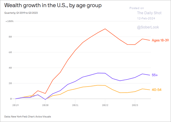 Millennials/Gen Z are experiencing the fastest percentage wealth gains - but they are off the smallest base.