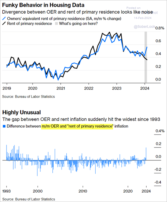The gap between OER and rent was unusual in January.