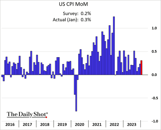 The January CPI report exceeded forecasts, indicating a bumpy path toward the Fed’s 2% target.