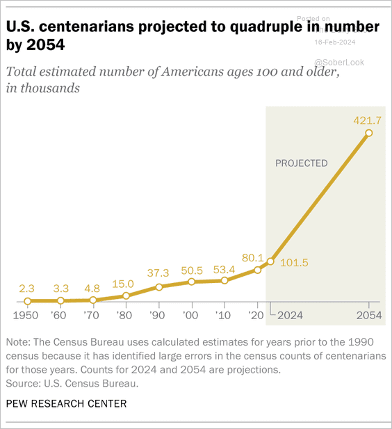 US centenarian population to quadruple in the next 30 years.