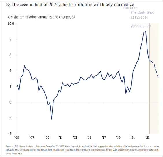 JP Morgan thinks that shelter inflation - the increase in the price of housing will normalize in 2024.