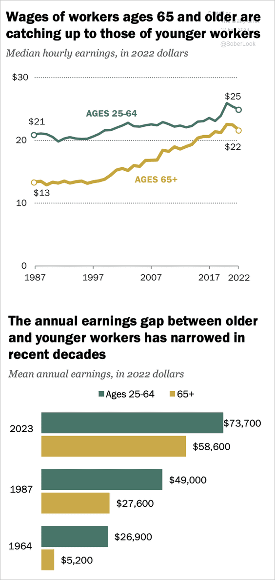 Wages of Boomer workers who’ve stayed on the job are catching up wages of younger workers.