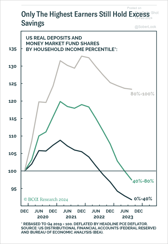 Excess savings remain elevated for high earners.