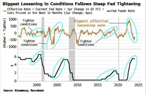 Periods of Fed Funds raises typically occur in conjunction with tightening economi conditions - this time they have taken place with a signficant loosening.