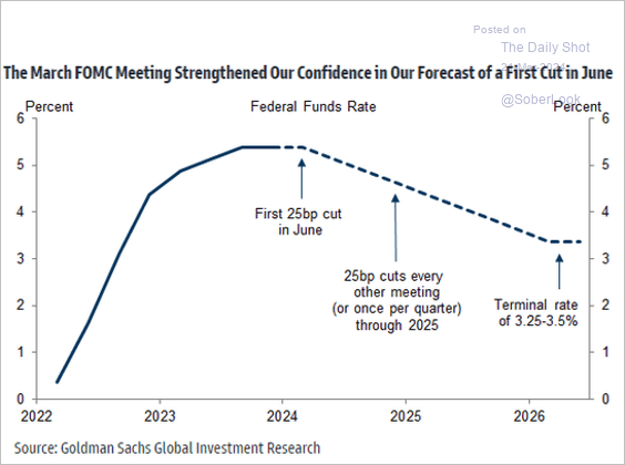 Goldman expects the first rate cut in June (2 charts).