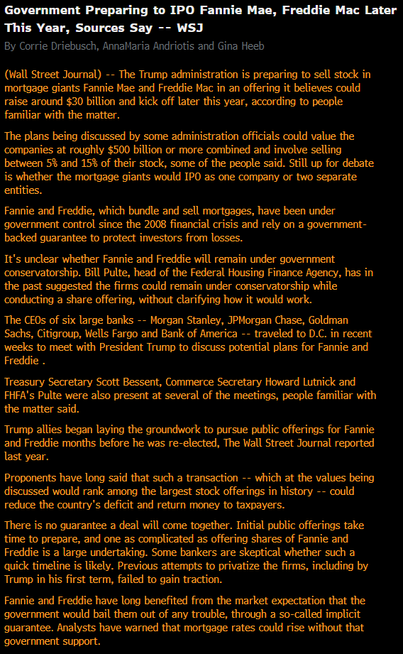The Trump administration is preparing to sell stock in mortgage giants Fannie Mae and Freddie Mac in an offering that could raise approximately $30 billion and begin later this year.