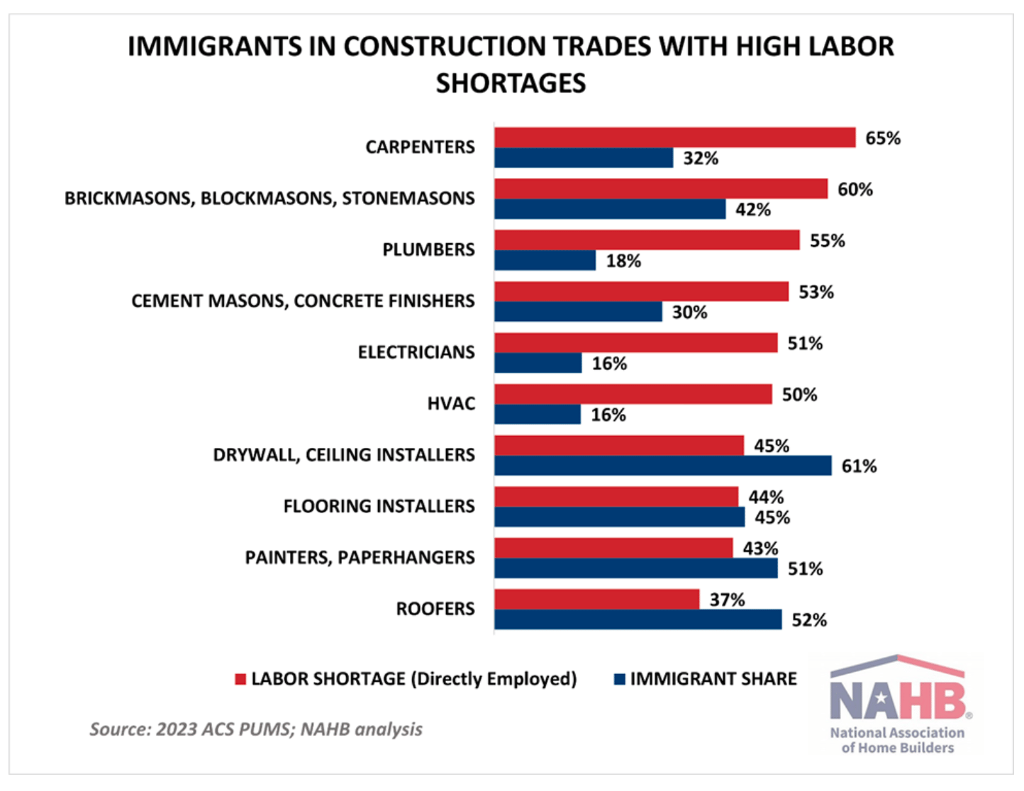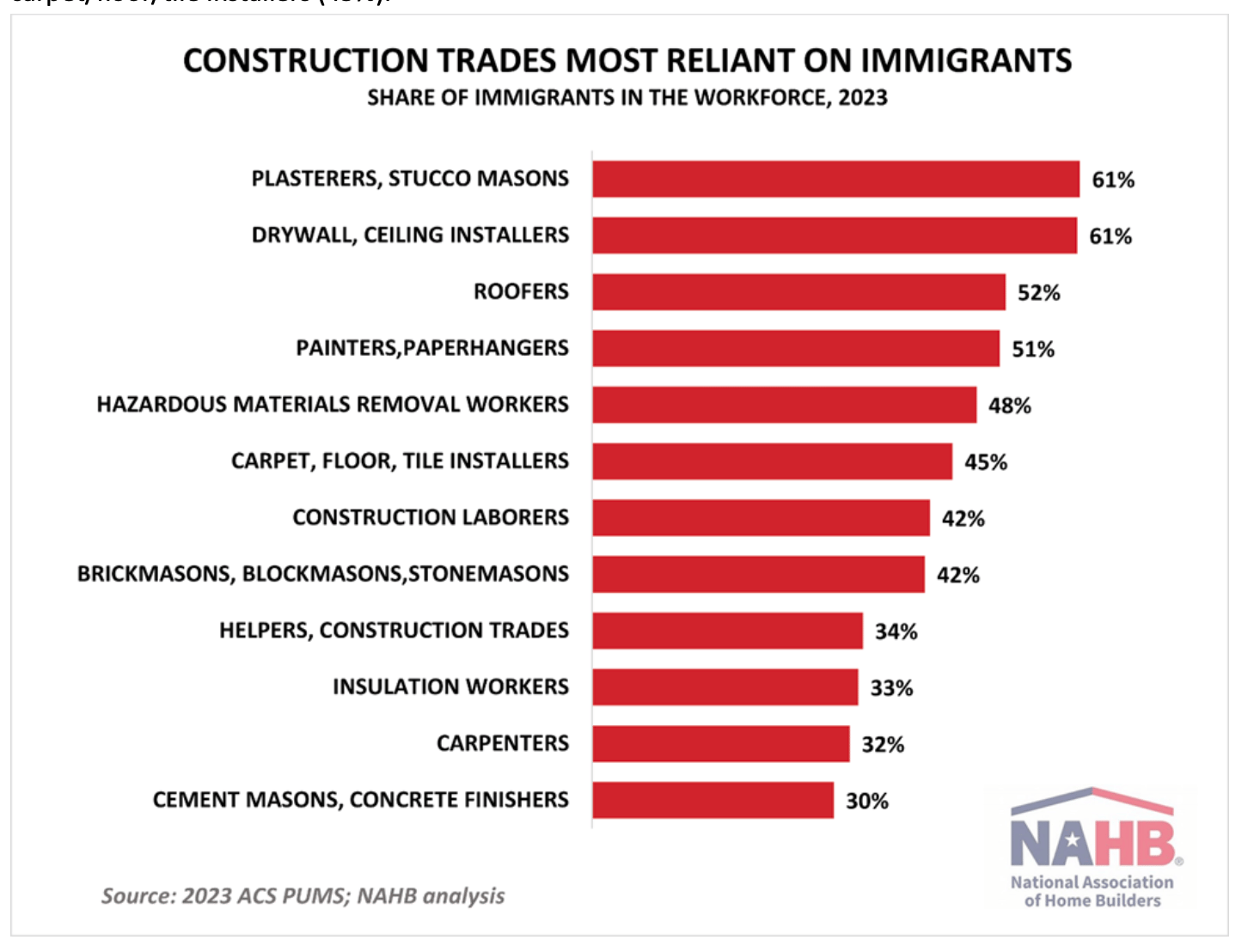 Immigrant workers now account for 25.5% of the construction workforce, a new historic high.