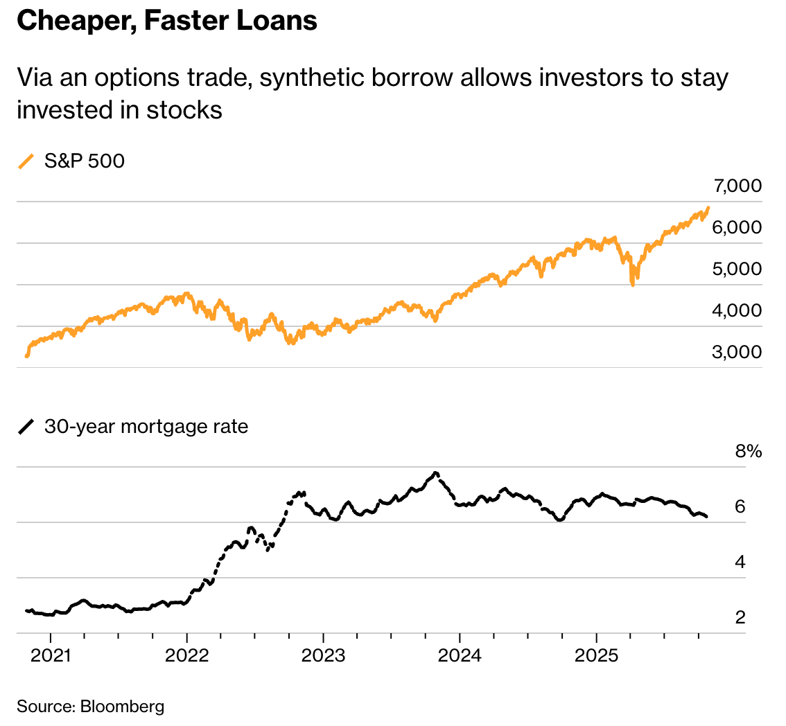The trade, a “box spread,”. By combining two opposing options positions — one bullish, one bearish — Yang built a strategy that mimics a fixed-rate loan: upfront cash now, repayment at a set date, and a locked-in cost in between. Yang used it to borrow at just 1.6% for five years — well below the rate on his traditional mortgage — creating a down payment without having to sell assets he wanted to keep in the market. “Borrowing against it keeps me in the market and avoids capital gains tax.” Now, that same strategy powers SyntheticFi, a San Francisco-based fintech Yang co-founded to help others do the same. Box spread loans, also called synthetic borrowing, aren’t accessible to every buyer. They require sizable portfolios to back them. But for those with the assets, they offer speed, flexibility, and often a lower cost than traditional bank credit — plus potential tax advantages.